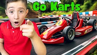 With your adult supervising and holding the kart first, sit wearing your helmet and have them gently push you a short flat distance to check stability steering and speed.