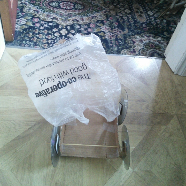 If the wheel won't spin freely or wobbles, check that the tape around the rim isn't squashing the craft sticks, ensure the center holes fit the straw snugly (not too tight or loose), and fix friction by slightly enlarging the hole or adding a small paper spacer so the wheel can rotate on the straw.