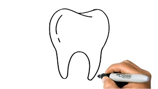 Sketch a rounded crown shape at the top and two tapered roots below to make the basic tooth outline.
