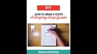 Turn it into a mini dental diagram by labeling the crown, gum ridge, and roots, try colored pencils or watercolor for a background, draw a row of teeth with varied shading, then sign and share your finished tooth on DIY.org as suggested in the final step.