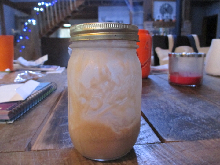 Spoon the ice cream mixture into the freezer safe container.