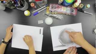 Smooth the pencil shading on the sphere with your blending tool or tissue using curved strokes that follow the sphere’s shape.