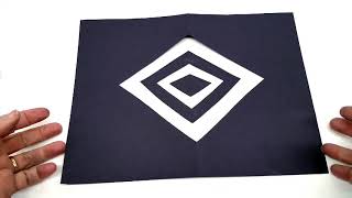 Open the black paper to reveal the mirrored black shape.